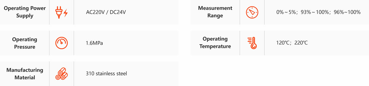 The equipment is covered with stainless steel and equipped with thermal insulation inside to prevent the risk of acid leakage and ensure the safe use of the sensor. In addition, it is equipped with a broken line function meter, which can accurately measure at 80° The concentration of sulfuric acid at temperatures above C solves the problem of lack of compensation for sulfuric acid conductivity at high temperatures.