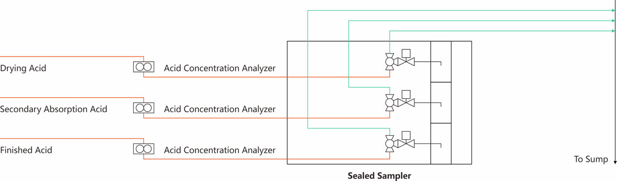 Sealed safe sampling ensures no acid gas leaks and no sulfuric acid spills into the environment during non-sampling periods.