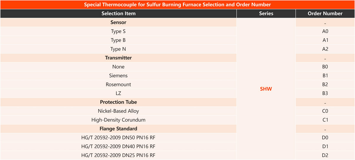 Designed specifically for SHW sulfur furnaces, the protective bushing is made of advanced deformed nickel-based superalloy composites with metal bushing sealing technology to ensure long-term high temperature resistance and can withstand extreme temperatures up to 1200°C. The thermocouple is known for its fast thermal response time, high measurement accuracy, wide temperature range, excellent high temperature resistance, good impact resistance and stable performance.