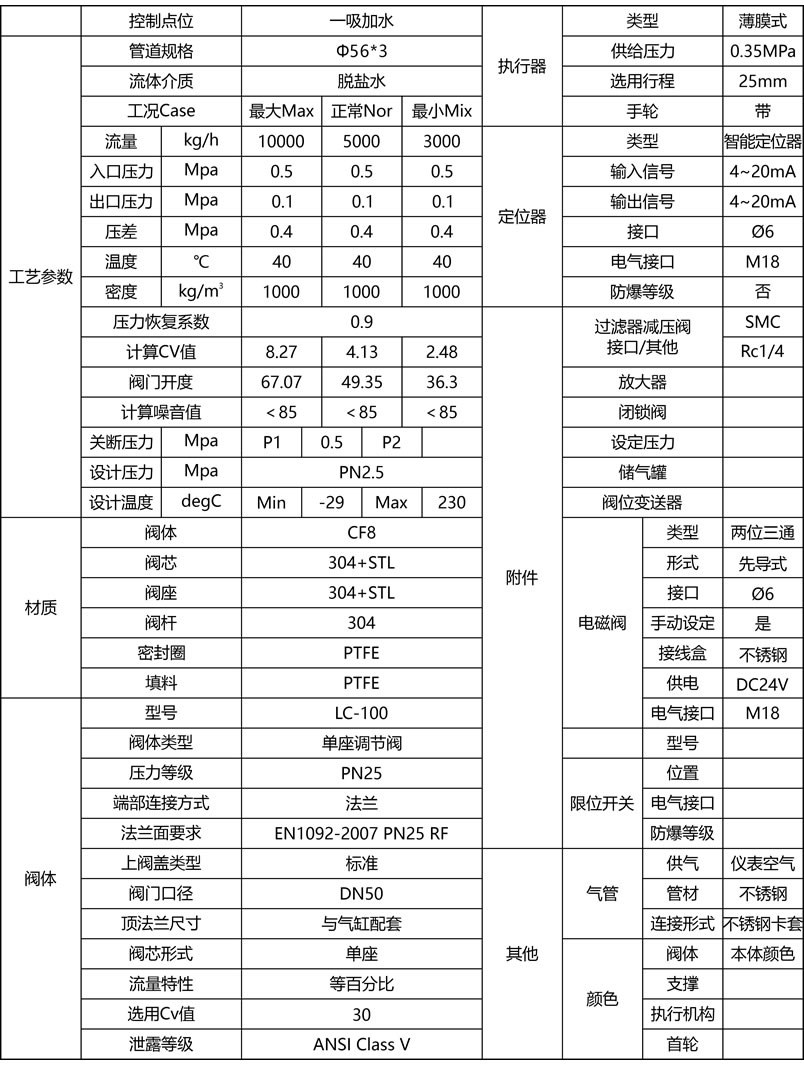 調(diào)節(jié)閥選型參數(shù)表