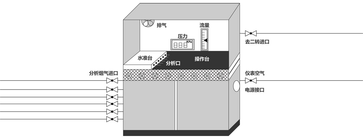 在傳統(tǒng)的煙氣分析流程中,實驗操作臺布滿了繁雜的管線設(shè)備的擺放缺乏合理性,導(dǎo)致實驗操作空間受限,這些問題對操作人員的分析工作造成了不利影響,并可能干擾實驗數(shù)據(jù)的準(zhǔn)確性。此外,在取樣分析階段,常常會有大量酸性有毒氣體泄漏,這不僅對環(huán)境造成污染,還會腐蝕生產(chǎn)設(shè)備,并且長期暴露在這些氣體中可能對分析人員的健康構(gòu)成嚴(yán)重威脅。