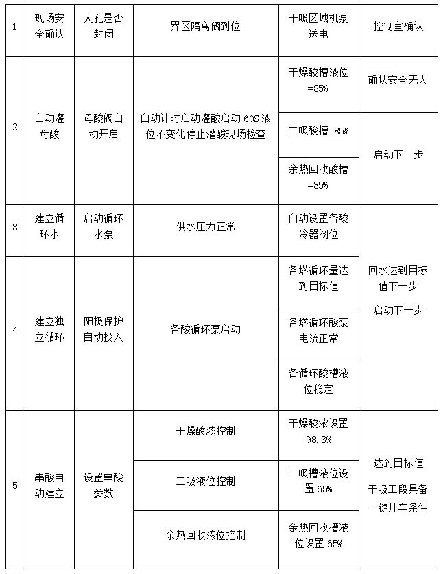 提示:本公眾號展示了部分硫酸裝置的一鍵開車實(shí)施技術(shù)。由于每套硫酸裝置的工藝流程各不相同,因此無法提供標(biāo)準(zhǔn)版的一鍵開車技術(shù)方案。如需實(shí)施硫酸裝置的一鍵開車,請與我們聯(lián)系。我們將根據(jù)貴方裝置的工藝特點(diǎn),定制專屬的一鍵開車實(shí)施技術(shù)方案,并全程協(xié)助貴方成功實(shí)施一鍵開車。