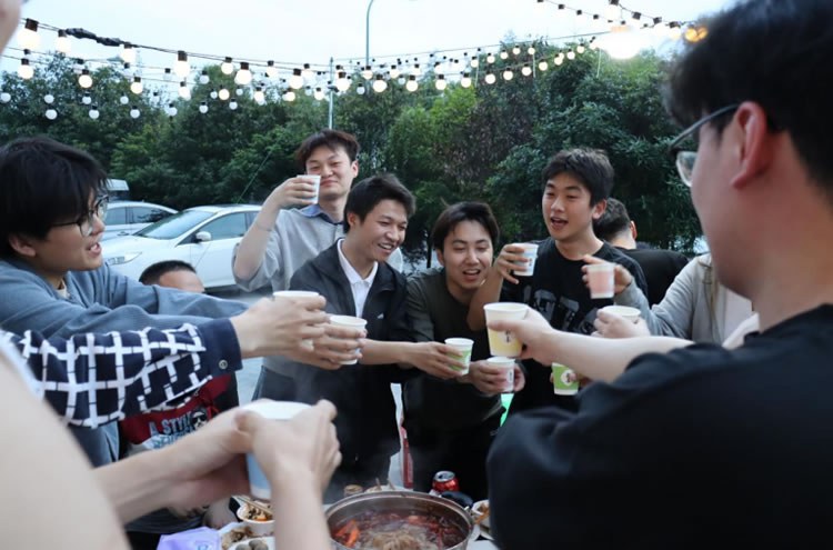 緊接著,香氣四溢的火鍋端上桌,大家圍坐在一起,舉杯共飲,歡聲笑語回蕩在空氣中。邊品嘗著美味的火鍋,邊欣賞著公司隱藏歌手們帶來的精彩表演。風格各異的歌聲,或深情動人,或激情澎湃,與天邊的夕陽相互映襯,構(gòu)成了一幅溫馨美好的畫面。