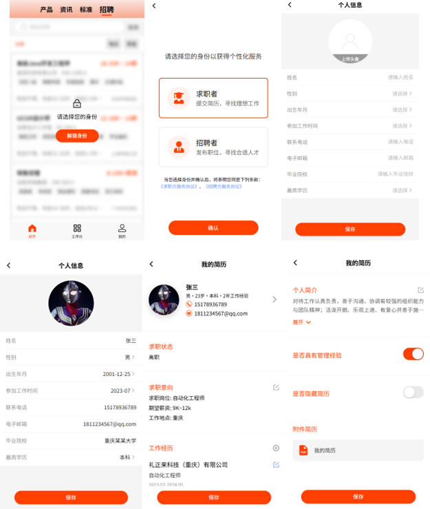 首次登錄APP,請(qǐng)先選擇你的身份——“求職者”或“招聘者”。請(qǐng)注意:身份一經(jīng)確認(rèn),后續(xù)將無法修改,請(qǐng)謹(jǐn)慎選擇。完成身份選擇后,需要完善個(gè)人基本信息,以便企業(yè)更好地了解并與你聯(lián)系。然后,進(jìn)入簡(jiǎn)歷編輯頁面,完善簡(jiǎn)歷信息包括求職狀態(tài)、意向崗位、工作經(jīng)驗(yàn)、技能標(biāo)簽、附件簡(jiǎn)歷等詳細(xì)信息。填寫越完整,越容易被HR關(guān)注哦。特別提醒:如你曾擔(dān)任過組長(zhǎng)、廠長(zhǎng)等管理崗位,請(qǐng)勾選“具有管理經(jīng)驗(yàn)”,你的簡(jiǎn)歷將獲得特殊標(biāo)識(shí),幫助HR快速了解你的專業(yè)實(shí)力。如果你暫時(shí)不想被企業(yè)搜索到,也可以選擇“隱藏簡(jiǎn)歷”。
