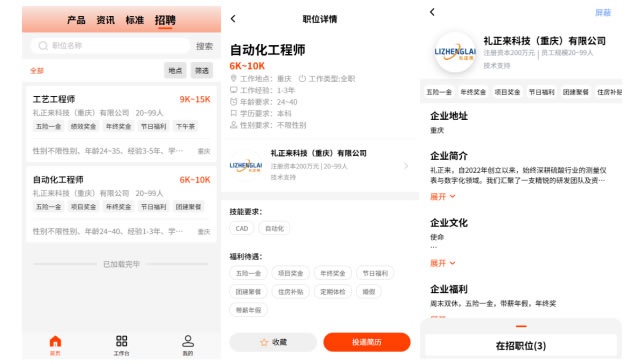 完善簡(jiǎn)歷后,回到首頁的“招聘列表”,這里匯集了化工行業(yè)各公司發(fā)布的崗位信息,你可以根據(jù)需求進(jìn)行篩選。點(diǎn)擊崗位,即可查看崗位詳細(xì)情況,包括薪資待遇、工作內(nèi)容、職位要求等等。如對(duì)某公司不感興趣,也可選擇“屏蔽”,這樣該公司將無法查看你的簡(jiǎn)歷信息。如果遇到心儀的崗位,也可以進(jìn)行收藏或直接投遞簡(jiǎn)歷。