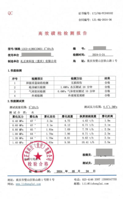 1、磺槍測試 磺槍測試工作是驗證高效磺槍制造品質及其是否滿足設計性能的有力手段。因此,為了確保高效磺槍符合公司的質量標準,我們制定了相應的檢驗流程,并設計制造了專門的磺槍測試裝置。該裝置能夠對磺槍的五個關鍵性能指標進行測試,包括壓力、霧化角度、霧化距離、霧化粒徑、以及霧化流量。