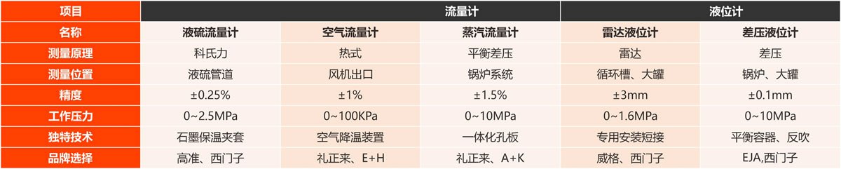 根據(jù)硫酸裝置工況特性,針對不同測量工況,選擇適合的測量儀表進(jìn)行二次開發(fā),以此解決當(dāng)前硫酸裝置面臨的測量難題。專用測量儀表適用于液體硫磺、風(fēng)機(jī)出口、過熱蒸汽、硫酸等流量計(jì);鍋爐、循環(huán)酸槽、液硫大罐等液位計(jì)。