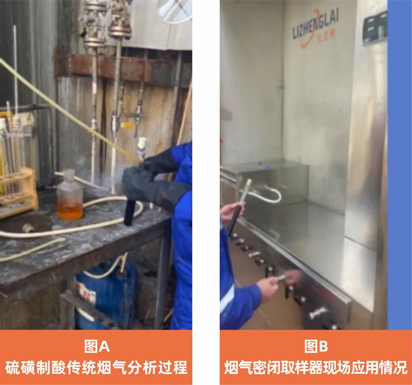 如圖A所示,傳統(tǒng)的煙氣分析流程缺乏精確可控的流量和壓力條件,這通常導(dǎo)致分析人員無法獲得準(zhǔn)確的分析結(jié)果,并且存在大量酸性有毒氣體的泄漏問題,這對分析人員的健康構(gòu)成了嚴(yán)重威脅。相比之下,圖B展示了LQ煙氣密閉取樣器如何徹底解決硫酸裝置煙氣分析過程中氣體無組織泄漏的問題。據(jù)估計,該裝置在使用過程中能夠減少一套硫酸裝置全年分段轉(zhuǎn)化率分析時向環(huán)境排放的酸性有毒氣體約2800立方米,相當(dāng)于1.4噸硫酸/年。因此,該設(shè)備的運用將有效解決傳統(tǒng)煙氣分析流程中大量酸性有毒氣體泄漏、取樣管線堵塞以及環(huán)境污染等問題。LQ煙氣密閉取樣器專為轉(zhuǎn)化率分析設(shè)計,集成了取樣管線酸性有毒氣體回收、防堵管路、分析流量控制和精密調(diào)節(jié)功能,能夠縮短分析時間并減輕分析人員的工作負(fù)擔(dān)。此外,該取樣器還采用了分析流量精密調(diào)節(jié)技術(shù),為分析人員提供了精確可控的流量,以確保獲得準(zhǔn)確的測量結(jié)果,從而將總體分析效率提升約50%。