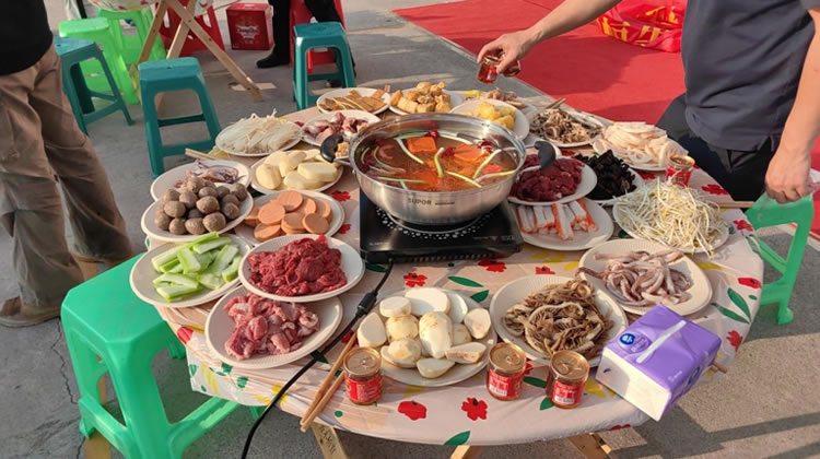 緊接著,香氣四溢的火鍋端上桌,大家圍坐在一起,舉杯共飲,歡聲笑語回蕩在空氣中。邊品嘗著美味的火鍋,邊欣賞著公司隱藏歌手們帶來的精彩表演。風格各異的歌聲,或深情動人,或激情澎湃,與天邊的夕陽相互映襯,構(gòu)成了一幅溫馨美好的畫面。