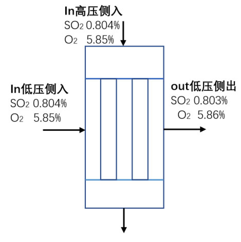 硫酸生產(chǎn)過(guò)程中,隨著時(shí)間推移,換熱設(shè)備的健康狀況會(huì)逐漸下降,出現(xiàn)泄漏的風(fēng)險(xiǎn)也隨之增加。因此,及時(shí)掌握換熱設(shè)備的健康狀況,對(duì)于保證系統(tǒng)轉(zhuǎn)化率至關(guān)重要。通過(guò)比較換熱設(shè)備低壓入口和出口的SO2濃度變化,若SO2濃度增加,則表明裝置存在泄漏。借助硫酸健康分析系統(tǒng),可以分析濃度變化并精確計(jì)算泄漏率。